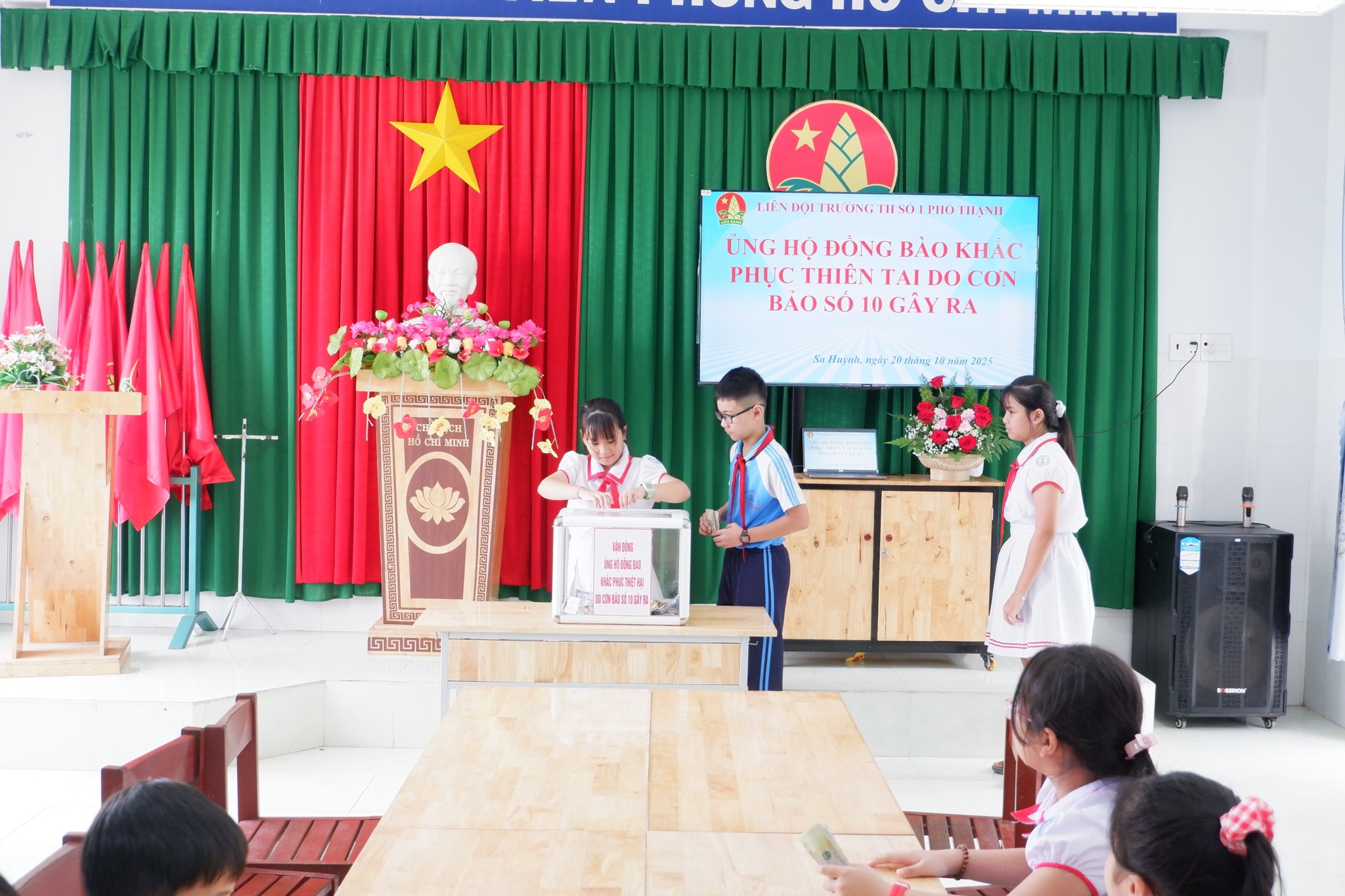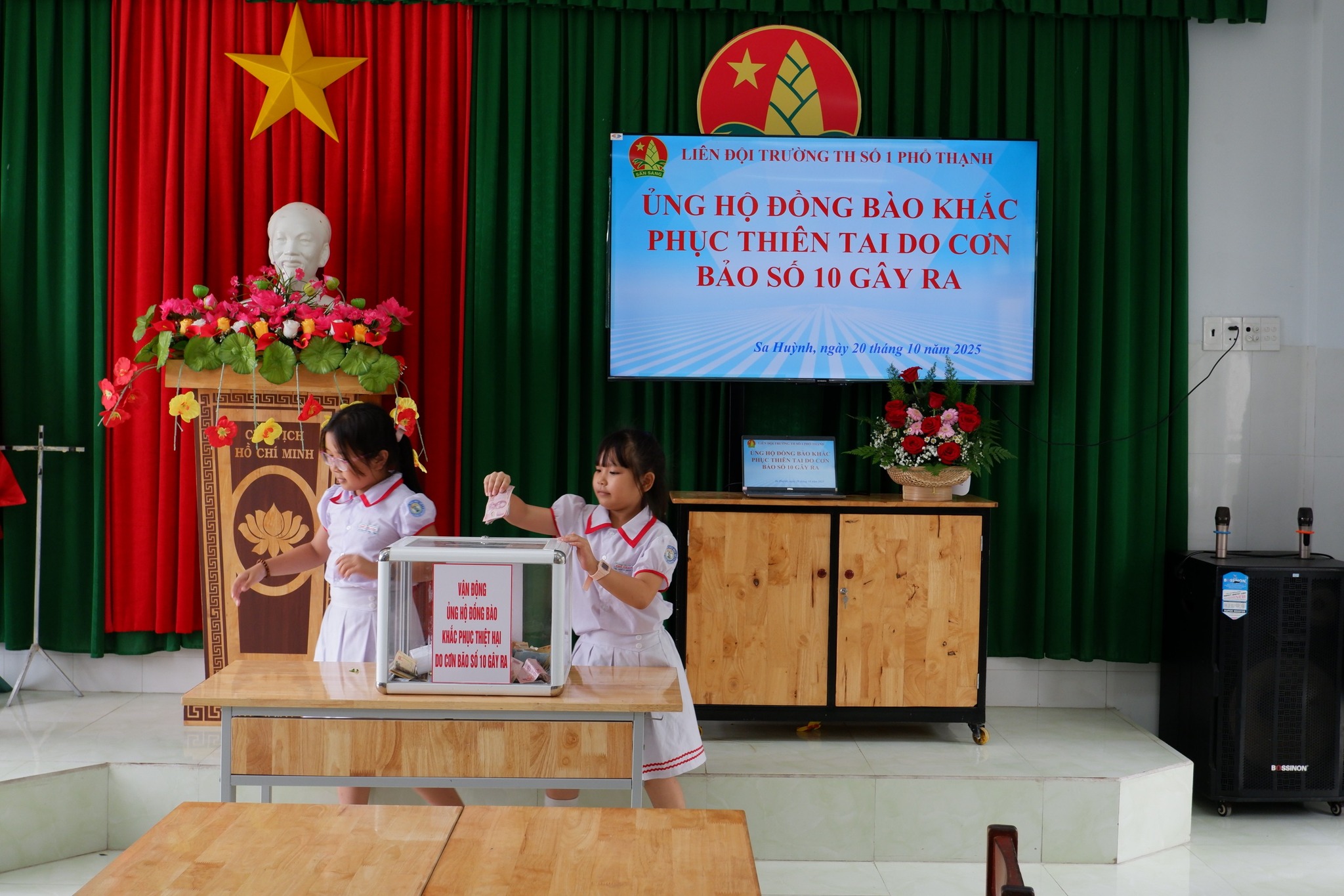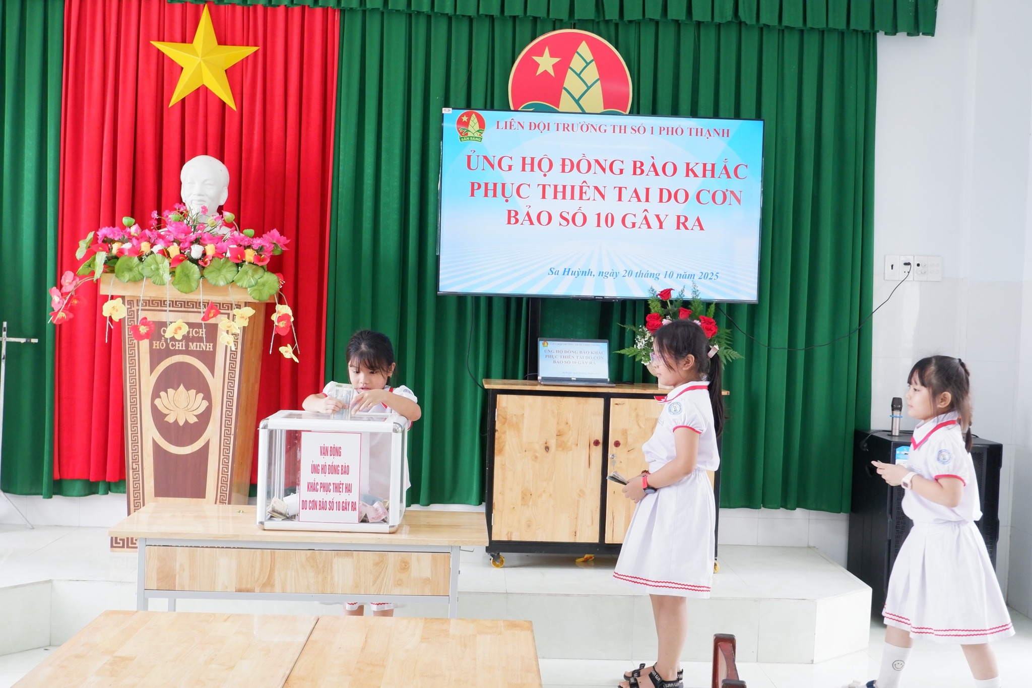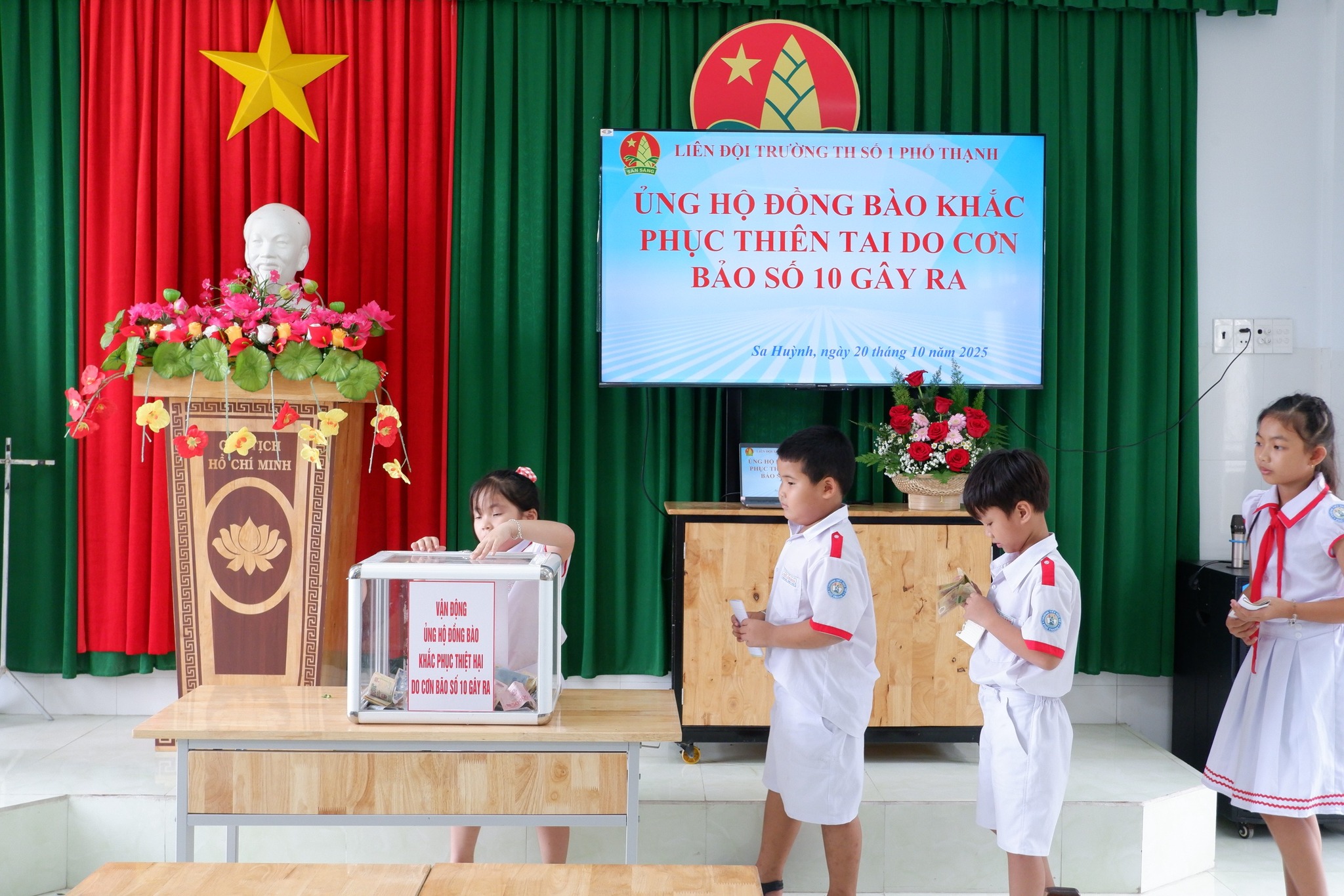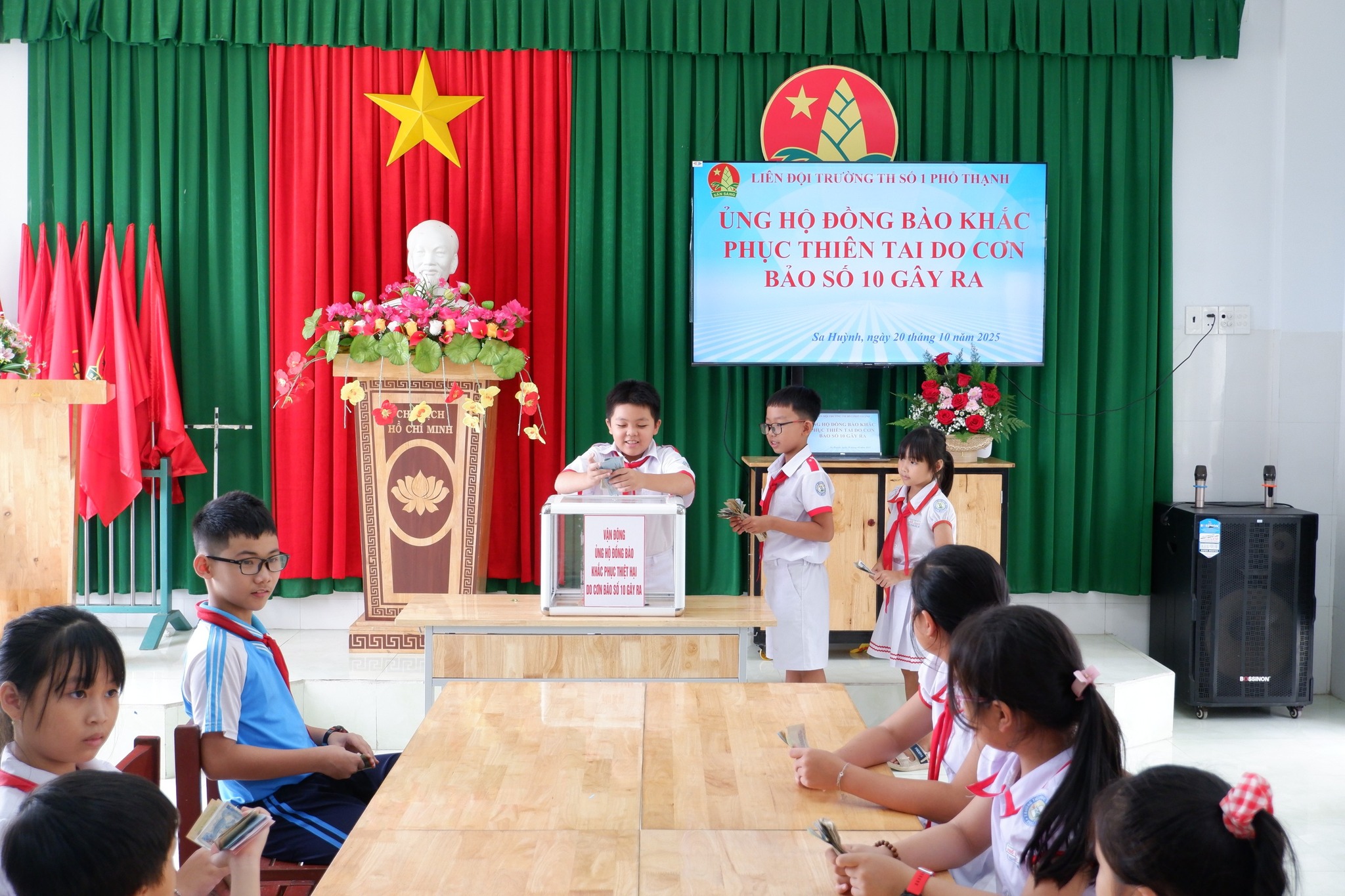 Hưởng ứng lời kêu gọi của Ủy ban MTTQ Việt Nam phường Sa Huỳnh về việc vận động ủng hộ đồng bào khắc phục thiệt hại do cơn bão số 10 gây ra, sáng ngày 20/10/2025, Trường Tiểu học số 1 Phổ Thạnh đã phát động phong trào “Chung tay giúp đỡ đồng bào khắc phục hậu quả thiên tai”.