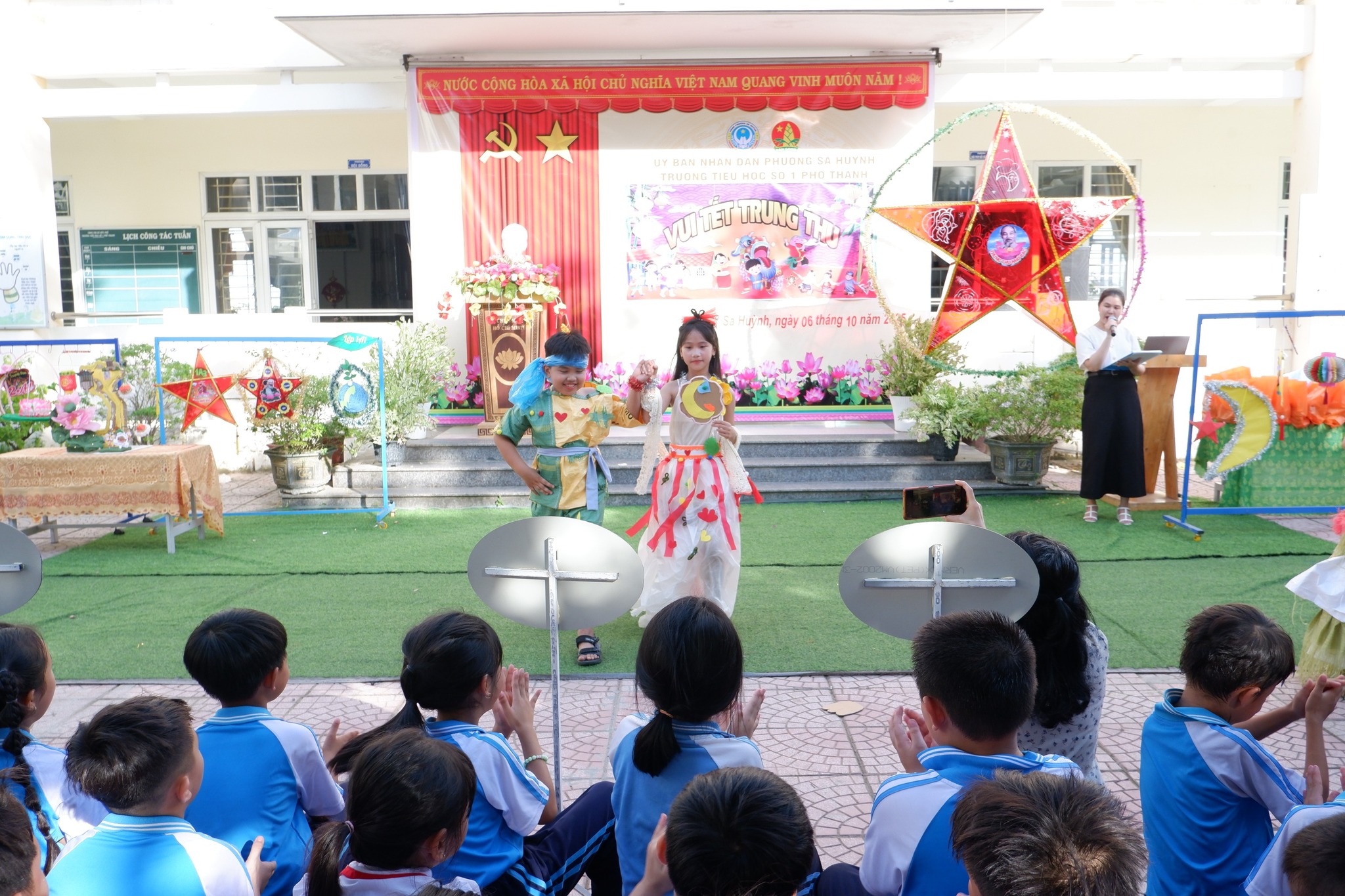 Sân khấu thêm phần sôi động với thi hóa trang nhân vật cổ tích, nơi các em hóa thân thành Chị Hằng , Chú Cuội , Thỏ Ngọc … đầy sáng tạo, hồn nhiên và đáng yêu.